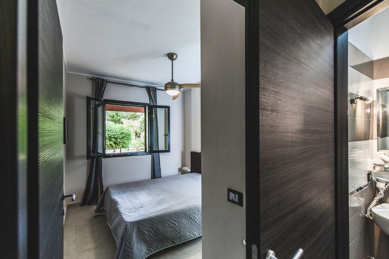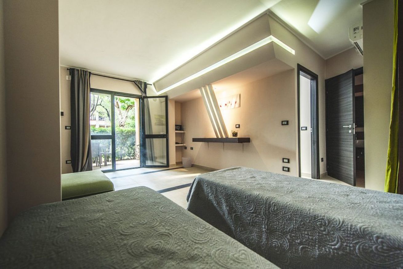 Goditi lo spazio senza barriere. Una camera quadrupla accessibile, con letto matrimoniale e due letti singoli, pensata per offrirti il massimo del comfort. Perfetta per una vacanza estiva con famiglia o amici, senza rinunciare alla praticità!